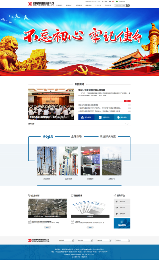 中国西电集团网站于2019年11月15日凌晨正式上线。近日来,为保障网站在紧张的工期内能顺利上线,博达网页设计师、实施工程师等前往西电集团公司驻场进行设计、实施调整,部署工程师远程配合信息中心领导进行服务,驻场人员针对临时调整的页面效果及其资料加班进行设计修改、实施,保证页面及效果的最优化呈现,力求完美的完成网站实施与上线工作。西电集团相关负责人也身处一线进行各方资源协调,经过多方努力奋战,最终保障网站及时上线。