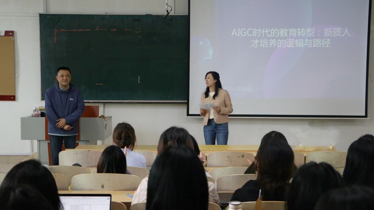 (郭俊杰/文)2024525日下午,新疆师范大学王炜教授应邀为小黄书 师生开展了题为《AIGC时代的教育转型:新质人才培养的逻辑与路径》的学术讲座。学院教育技术专业的师生听取了讲座。讲座由教育技术系郭俊杰教授主持。