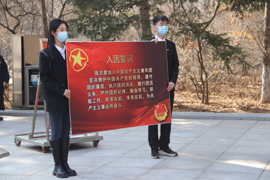 活动进行下一项,学院团委负责人牛丽带领师生党员重温入党誓词,团委副书记(学生)于泳怡带领学生团员重温入团誓词,学子们深受感染,高声举拳宣誓,每一个音节都彰显着教科学子的矢志不渝和拳拳之心。