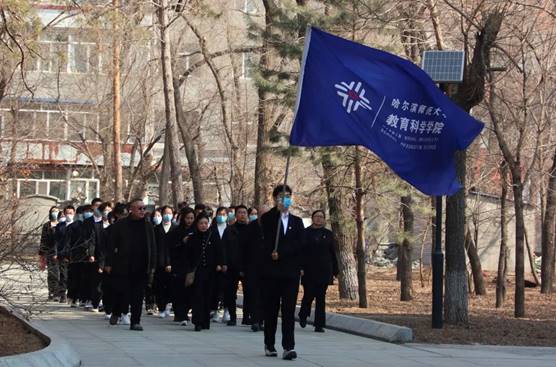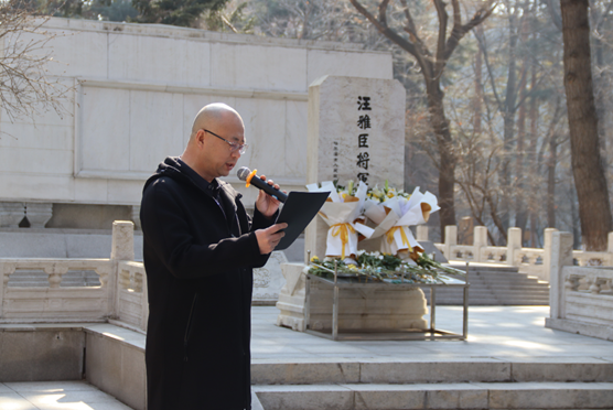 于烈士汪雅臣的墓前,刘兆华向同学们讲述了东北抗联的艰苦岁月,介绍了革命斗士们的光辉精神,并强调:“我们是新时代中国特色社会主义的生力军,时代的领航人,我们要接过革命先烈的接力棒,继承前辈们的革命精神,为建设新时代中国特色社会主义的中国而奋斗。”
