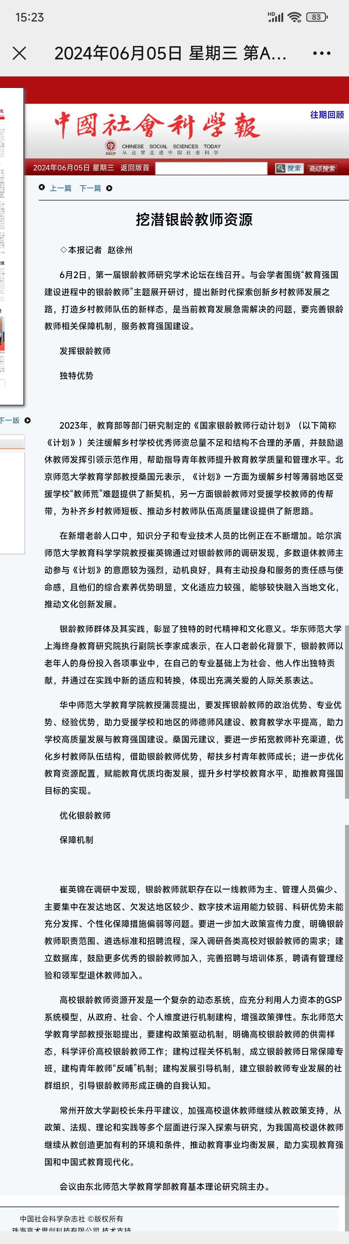 6月2日,由东北师范大学教育学部教育基本理论研究院主办的第一届银龄教师研究学术论坛在线上举行,小黄书 博士生导师崔英锦教授受邀在会上做了题为《银龄教师就职现状及助推高等教育动能分析》的调研报告。崔英锦在报告中指出了银龄教师队伍面对《国家银龄教师行动计划》的状态、银龄教师就职现状与存在的问题,并提出应对策略。崔英锦的报告受到与会学者们的好评。