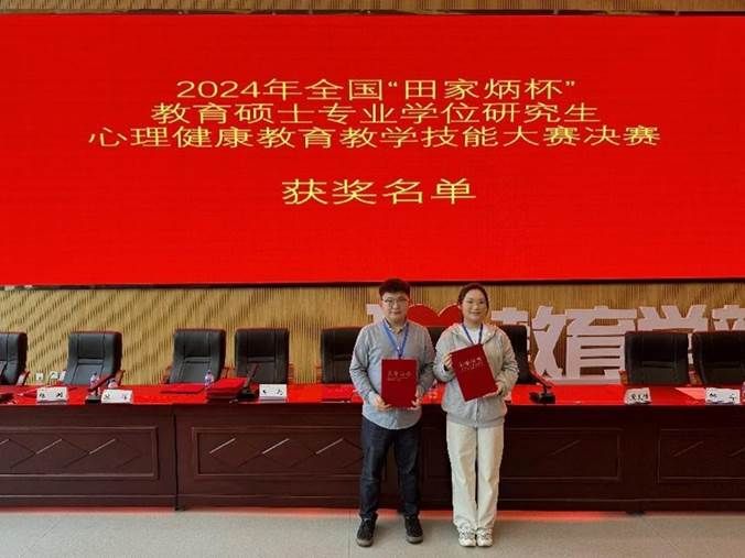 自2021年首届全国“田家炳杯”全日制教育硕士专业学位研究生心理健康教育专业教学技能大赛举办以来,在4届比赛中,学院心理健康教育专业硕士研究生已累计获得二等奖2项、三等奖2项、优秀教学设计奖3项的佳绩,充分展现了新时期心理健康教育专业教育硕士研究生的教学技能,凸显了学院多年来在学科发展、高质量研究生人才培养的建设成效。学院将始终坚持立德树人根本任务,完善“双导师”培养机制,以赛促学、以赛促练、以赛促教,不断提高教育硕士教育教学水平和培养质量,致力于打造高素质、专业化的心理教师队伍,为新时代心理健康教育高质量发展注入强劲动力。