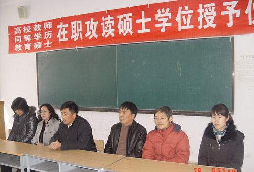 在江南校区田家炳楼309室举行了2009年度秋季高校教师、教育硕士及在职攻读硕士学位授予仪式。本次获得硕士学位的是教育管理、课程与教学论、教育技术等专业的51名学员。在授予仪式上,学院温恒福院长致贺词,鼓励大家在各自的工作岗位和研究领域积极进取,努力提高自身的业务水平和科研能力。学员代表在致词中感谢各位导师三年来的辛苦教导,表示一定不辜负学院的培养和导师们的期望。
