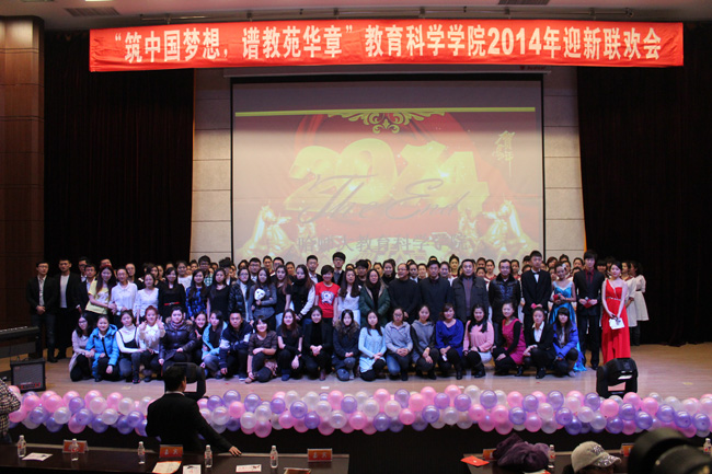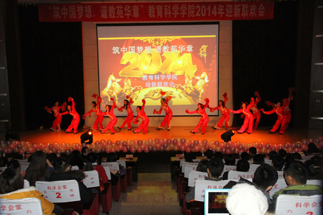 在江北校区科学会堂成功举办“筑中国梦想,谱教苑华章”2014年迎新联欢会。校宣传部、校团委、学工处的领导和领导及全体辅导员出席晚会现场,与学院学生欢聚一堂,其乐融融。