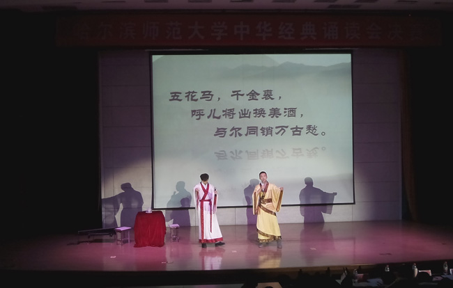 (周佳妮/文)为深入贯彻落实党的十七大提出的弘扬中华文化、建设中华民族共有的精神家园、开展爱国主义教育的战略任务,加深高校学生语言文化素质,我校举办了中华经典诵读会,2014年11月26日下午3时在科学会堂二楼拉开了决赛的帷幕。