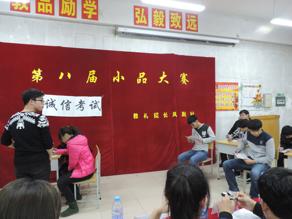 学生的课余文化生活,营造特色的校园文化氛围,2014年12月4日,学院第八届小品大赛在社科楼629火热开赛,经过一轮轮激烈的角逐后,七支队伍进入了此次决赛。担任评委的有11级、12级主要学生干部、长风剧社各部门部长。