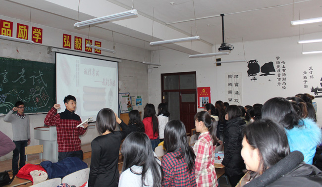 违纪处理规定,鼓励同学们抓紧时间复习备考,做讲诚信的大学,践行社会主义核心价值观。最后,同学们进行了诚信宣誓。