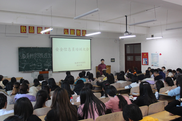 培训会上,学院副书记兼辅导员魏衍军对安全信息员的工作内容和职责、组织结构、工作程序以及考核和奖励等方面做出详细讲解,其中重点强调安全信息员的职责,并对安全信息员提出了工作要求:在日常生活中应随时关注班级同学的思想和行为动态,关心生活和学习困难学生;要多与老师沟通汇报寝室同学情况;要严格要求自己,以身作则,做同学们的表率和榜样,等等。同时,结合案例分析应如何预防安全事故的发生以及安全事故发生时应采取的应急处理办法。