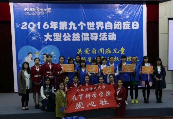 “爱心社”志愿者同学们,在世界第九届“国际自闭症日之际参加了由哈尔滨金色阳光自闭症康复中心主办的“关爱自闭症儿童,每一颗星星都有权利绽放”大型公益志愿服务活动,活动在哈尔滨理工大学报告厅拉开帷幕。
