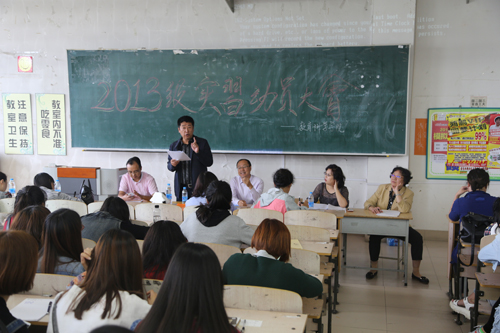 在人文楼203教室隆重举行2013级本科生教育实习动员大会,学院党委书记辛显文、副院长姜君和各系主任、教科办负责人、实习带队老师、年级辅导员以及全院13级各专业本科学生参加大会。