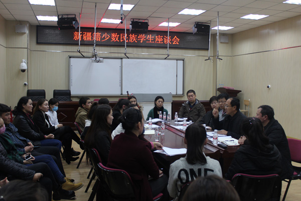 (魏衍军/文)为更好地了解新疆籍学生的学习生活情况,帮助新疆籍学生树立明确的学习目标和独立的生活意识,10月12日,在社科楼会议室,学院召开了新疆籍少数民族学生座谈会,学院领导班子成员、新疆內派服务管理教师、辅导员及新疆籍学生参加了座谈会。
