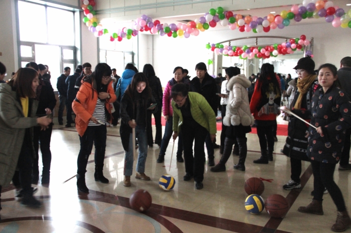 此次趣味运动会分为个人项目和集体项目,个人项目包括踢毽子,托球往返,掷乒乓球和赶“猪”跑,集体项目包括掷羽毛球接力和背球接力赛。比赛开始后,全体教职工全身心地投入到运动会中,在比赛中各尽其能,啦啦队员们也不甘示弱,此起彼伏的加油声是他们对此次运动会最大的支持。