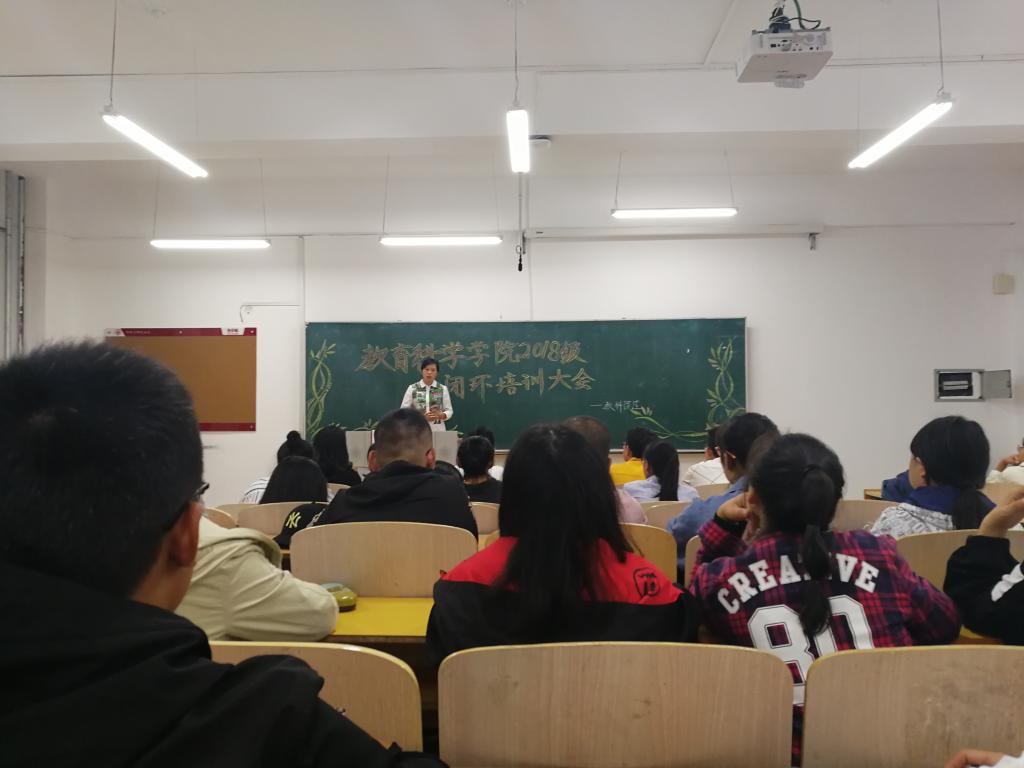 晚在社科楼召开了2018级安全信息闭环报送工作培训会,会议由学院党委副书记王清艳担任主讲人,2018级全体新生参加了此次会议。
