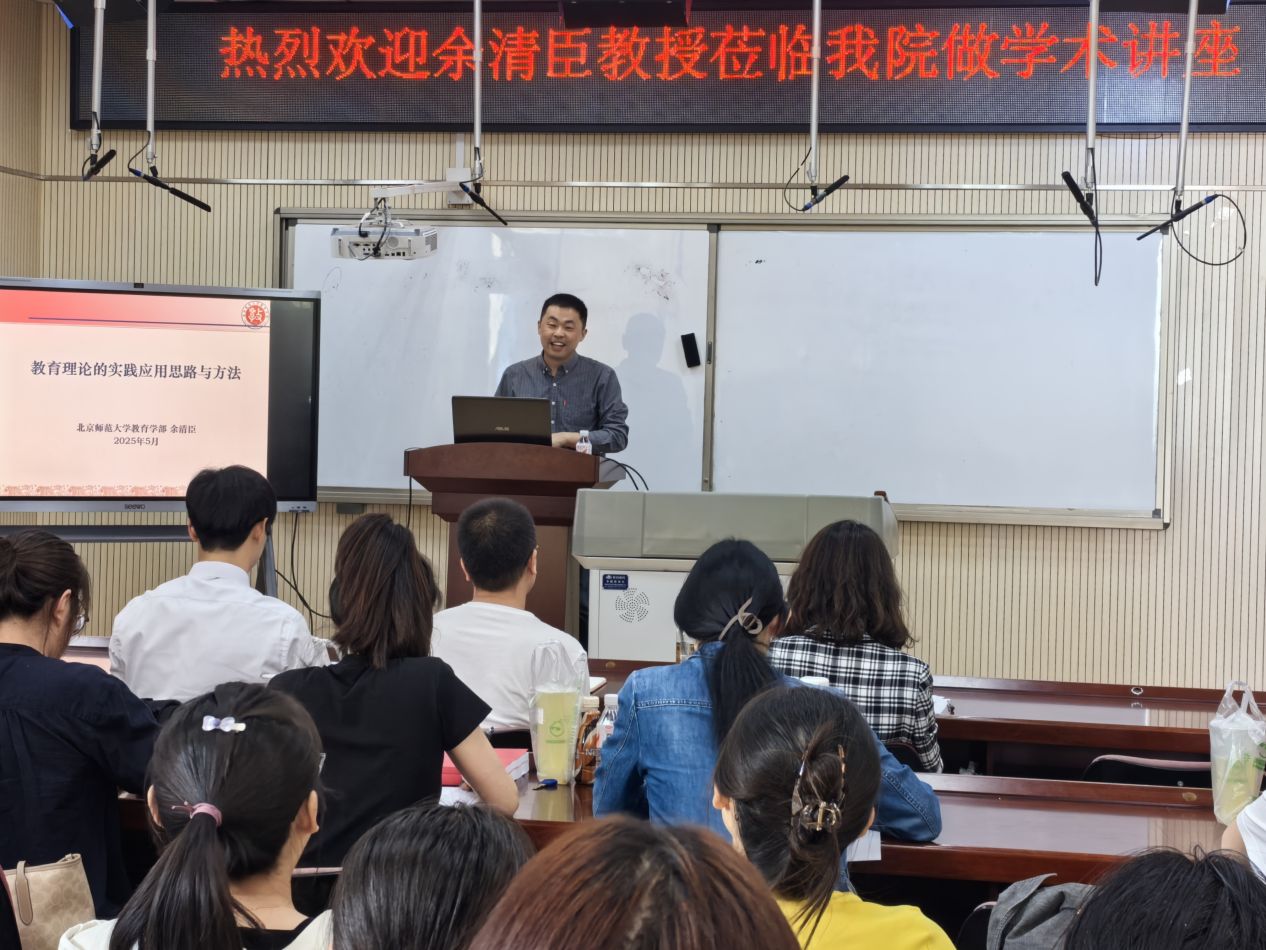 邀请,5月29日下午,北京师范大学教育学部副部长、博士生导师余清臣教授在社科楼213教室作题为《教育理论的实践应用思维与方法》的学术讲座。教育学学科博硕研究生听取讲座。讲座由小黄书