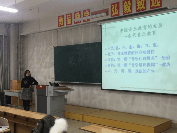 两位青年骨干教师董向宇、刘路希,活动中与大家分享他们的研究与心得。董向宇老师关于“论文选题与写作的经验分享--以毕业论文的写作为例”的报告为在场的研究生提供一个厘清研究生毕业论文方法和思路,简明扼要的阐释了在研究生毕业论文写作中需要注意的问题。留美归来的刘路希老师“中美音乐教育比较”为大家打开了新的研究视野,刘老师以学前和中小学的音乐活动和课程为研究切入点,用生动的美国中小学音乐活动视频为例,与在场的同学们分析了中美音乐教育的不同之处以及推动我国音乐教育发展的启示。
