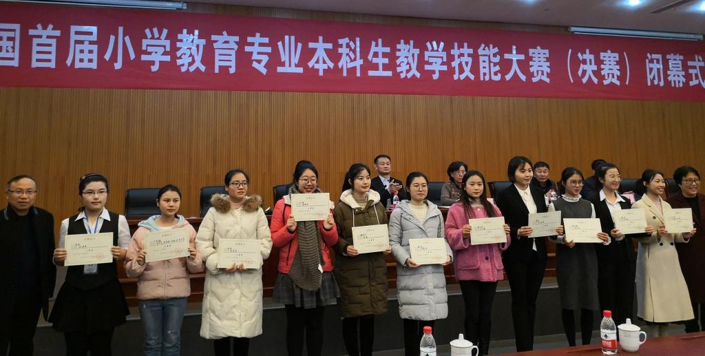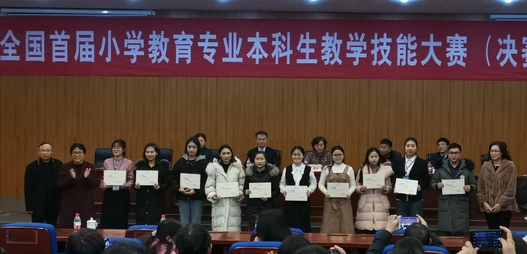 认真组织选拔,推荐小学教育专业2015级吴瑕钰、2016级韩琪2名本科生参加了初赛,2名同学均入围决赛。2018年12月28日-30日,由小学教育专业负责人赵彦宏教授亲自带队兼指导教师,带领2名学生参加了决赛,并在决赛中获得优异成绩。2015级吴瑕钰同学荣获小学语文教学技能大赛二等奖,2016级韩琪同学荣获小学数学教学技能大赛二等奖。