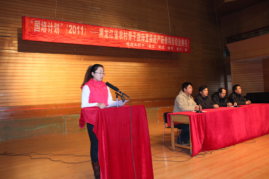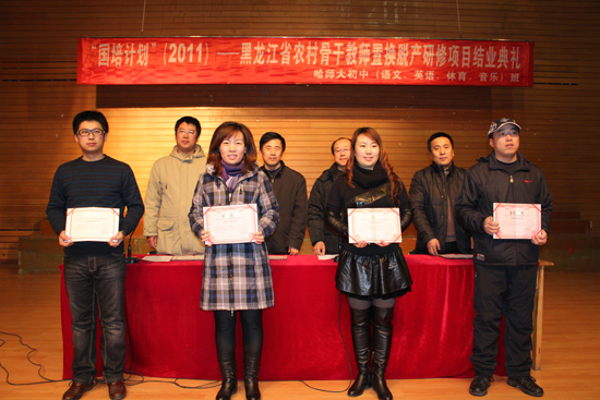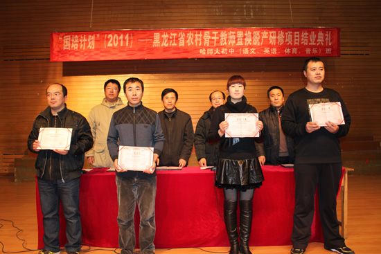 2011年12月10日上午9:00,国培计划2011—黑龙江省农村骨干教师置换脱产研修项目(初中英语、初中语文、初中体育、初中音乐)结业典礼在我校江南校区音乐厅隆重举行,国培计划首席专家、小黄书