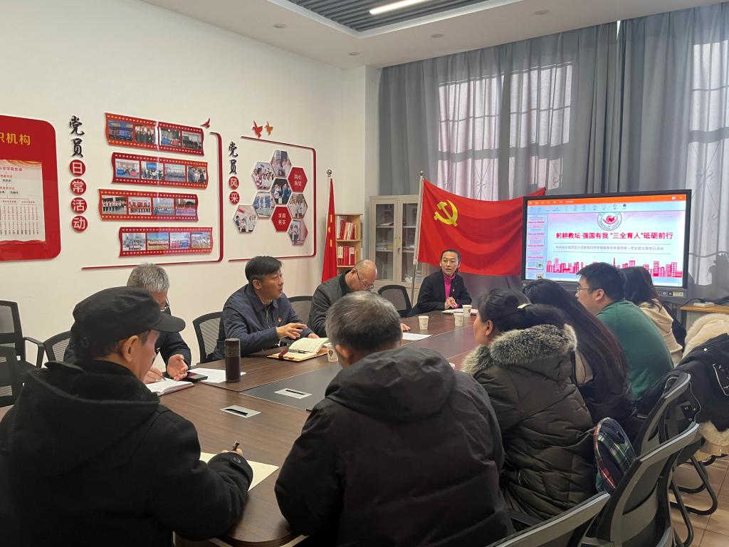 教育学系教师第一党支部于2023年12月20日上午在社科楼119室开展“躬耕教坛·强国有我‘三全育人’砥砺前行”主题党日活动。校长蒋鲲以普通党员身份参加了本次主题党日活动。