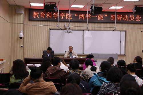 在部署动员会上,学院党委书记辛显文首先传达了学校党委关于开展育会议精神和实施方案,强调了开展“两学一做”学习教育的重要意义,宣读了学院“两学一做”学习教育实施方案,对学院“两学一做”学习教育工作做出了具体部署,号召学院全体党员积极投身到“两学一做”学习教育中来,认真学习党章党规和习总书记系列讲话,坚定理想信念,立足本职岗位,积极发挥党员先锋模范带头作用,做新时期合格党员。