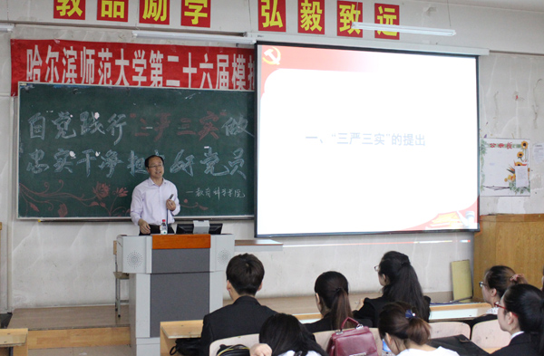 党委书记辛显文为全院本科、研究生党员和积极分子作了题为“自觉践行‘三严三实’,做忠诚、干净、担当的好党员”的辅导报告,同时也是给即将离校的毕业生党员上了最后一次党课。